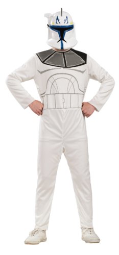 Star Wars Clone Wars Captain Rex Action Suit includes jumpsuit, molded mask. One size fits children size from 8 to 10.This costume is official and trademarked by Lucas film Ltd. It makes a great addition to any dress up wardrobe.